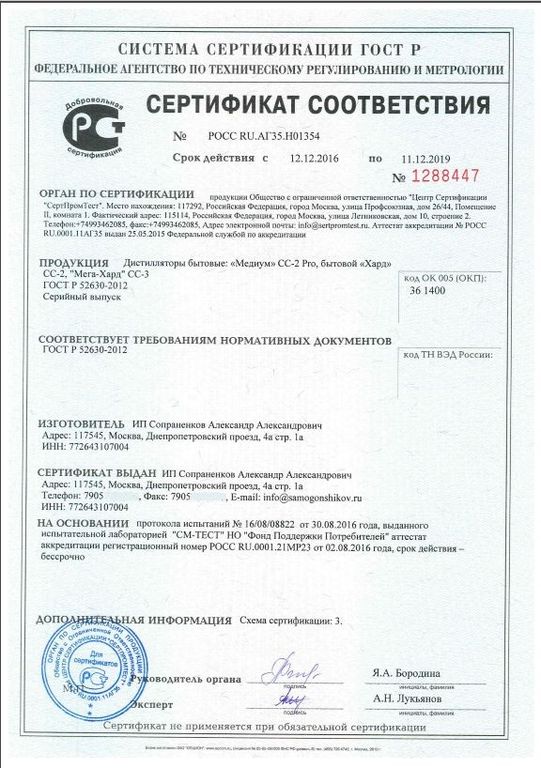 Высота дистиллятора "Мега-Хард" СС-3 - 65см.