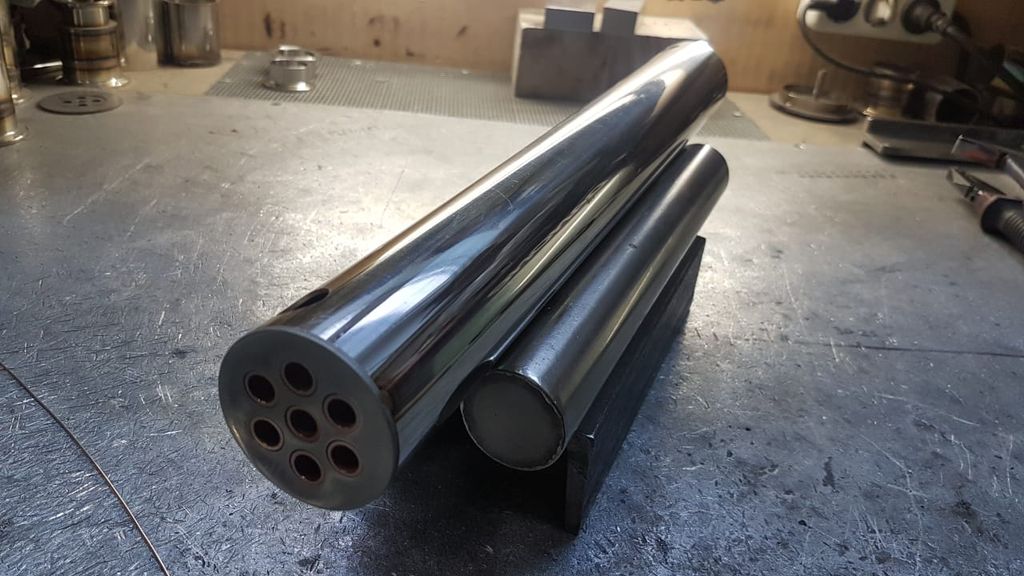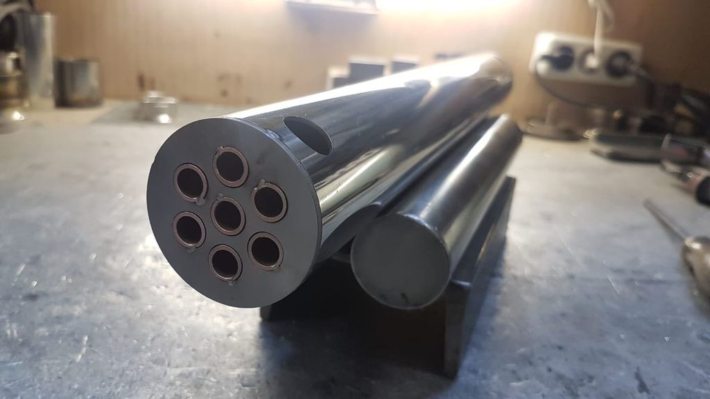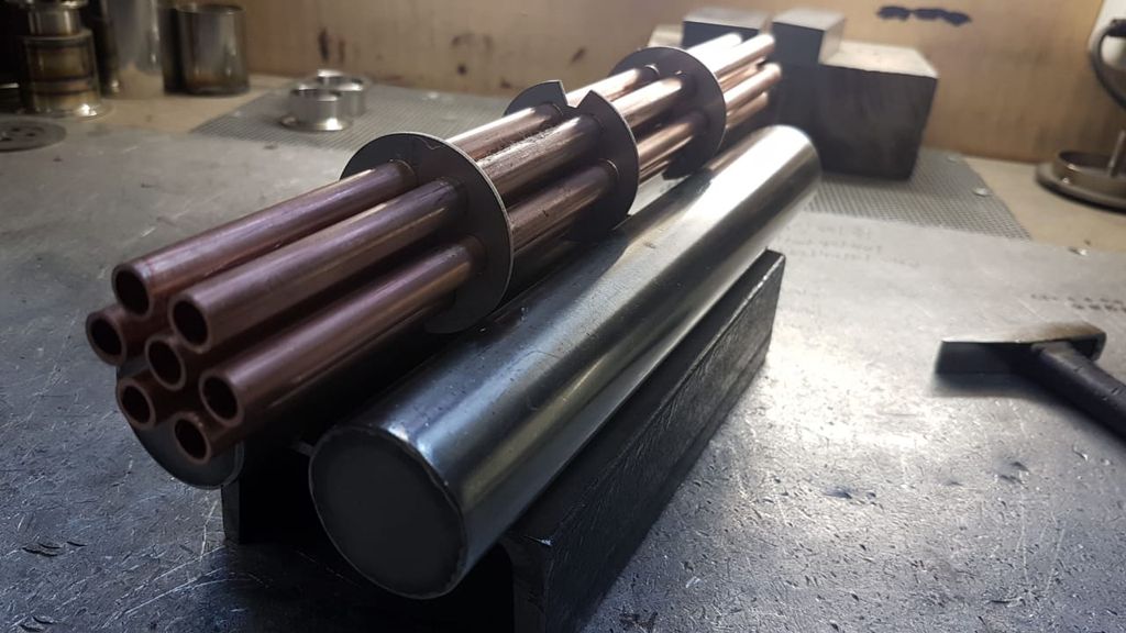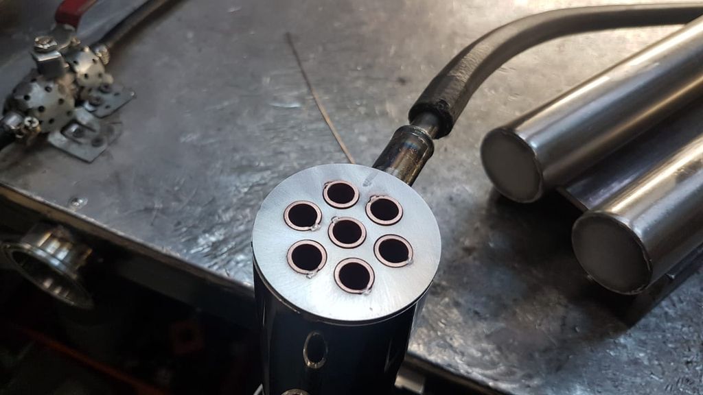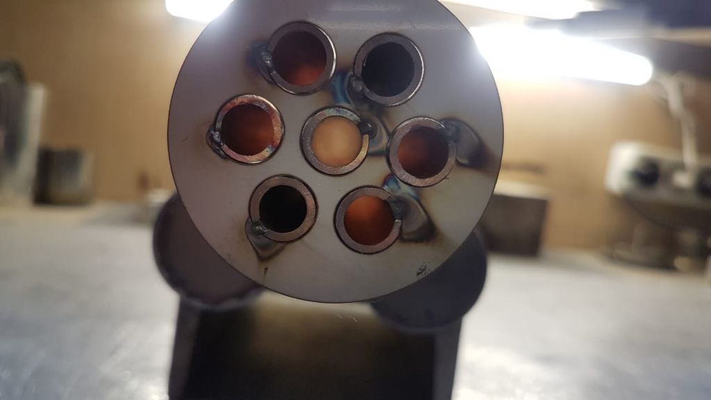 Внутри 7 МЕДНЫХ трубок и 5 перегородки из нерж.стали.