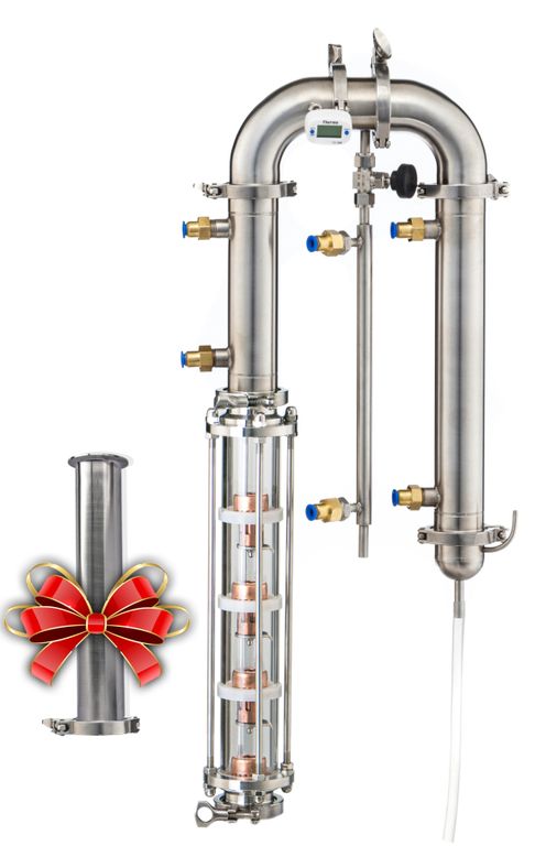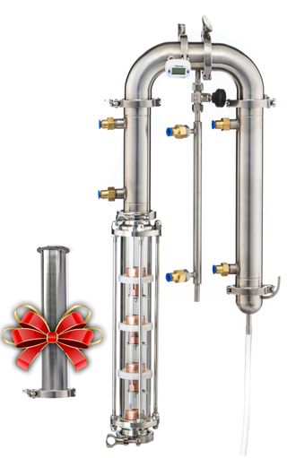 При заказе этого дистиллятора вы получите - узел отбора по жидкости и полный сантехкомплект для подключения, 1 термометр и ЦАРГУ 30 см с РПН в подарок. На 1,5 дюйма до 6 литров, на 2 дюйма до 9 литров в час в режиме потстилл.