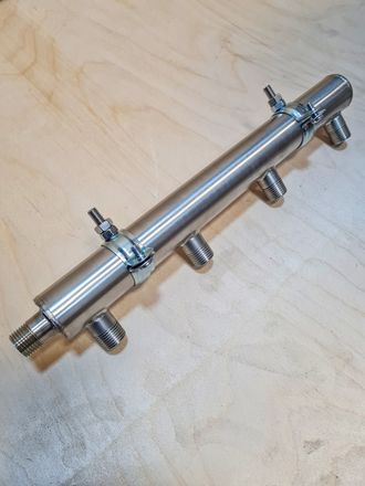 Имеет 1 ввод в торцевой части коллектора и 4 боковых вывода с резьбой на 1/2