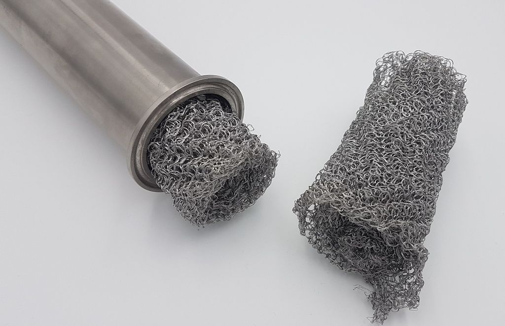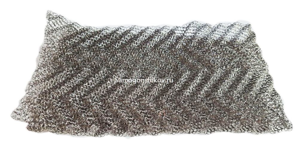 Плетение насадки состоит из четырех нитей, пересекающихся в одну. Состав нити, пищевая нержавеющая сталь, толщиной 0,13мм каждая. Плетение очень тонкое, зазоры между нитями менее 1 мм, что позволяет максимально очистить продукт и укрепить его. На насадке РПН выдавлен узор в виде зигзага, что позволяет флегме стекать медленно.