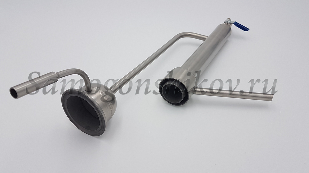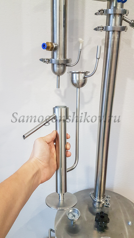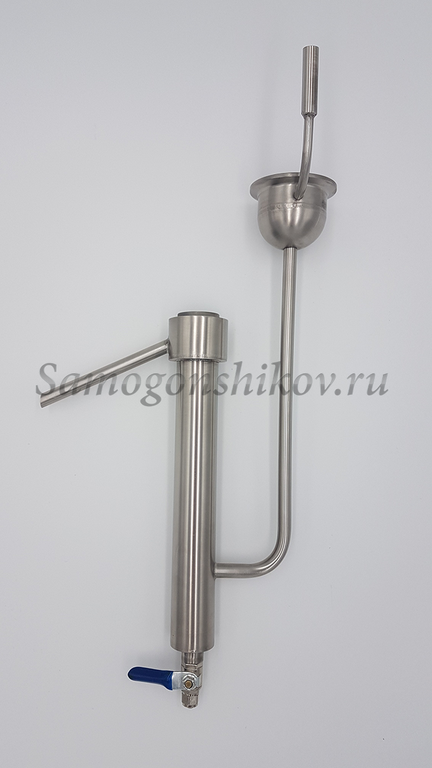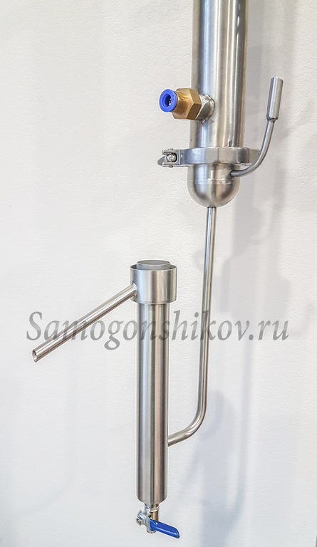 Есть связь с атмосферой на которую приварена трубка 10 мм. Если использовать попугай с подставкой, то на трубку можно одеть силиконовый шланг с носика холодильника. В таком варианте дистиллят будет стекать через связь с атмосферой прямо в попугай. Это очень удобно и можно не переживать, что из сферы вылетит шланг.